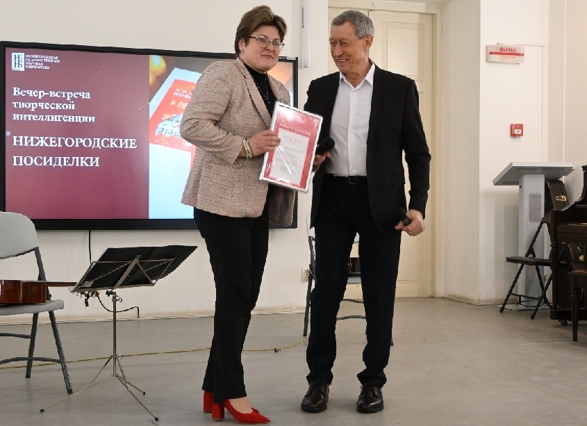 20 января в Белом зале нижегородской Ленинки состоялся творческий вечер интеллигенции «НИЖЕГОРОДСКИЕ ПОСИДЕЛКИ». Такие встречи после Нового года традиционно проводит в библиотеке известный писатель, директор издательства «Книги», главный редактор литературно-художественного журнала «Нижний Новгород» и альманаха «Земляки» Олег Рябов.